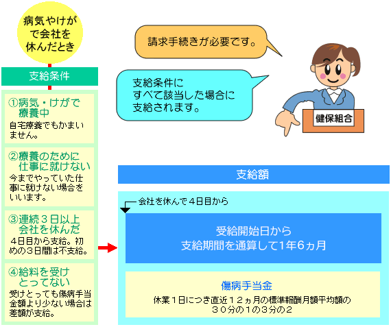 病気やけがで働けないときは休業1日につき所定の額を支給