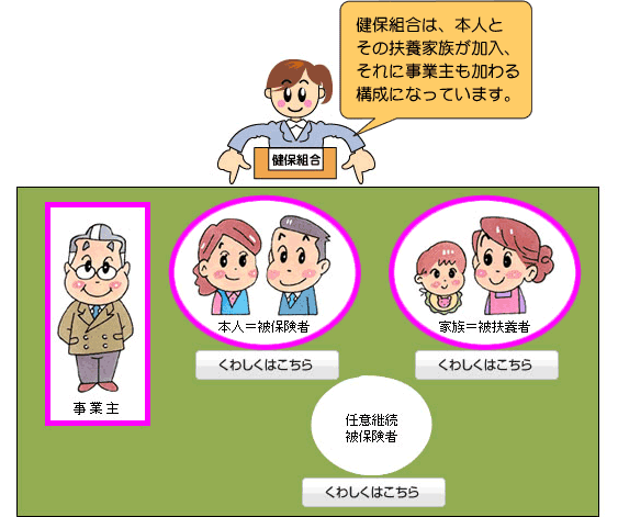 また、退職すると被保険者でなくなりますが、退職後も「任意継続被保険者」になれば、引き続き健保組合に加入できます。
