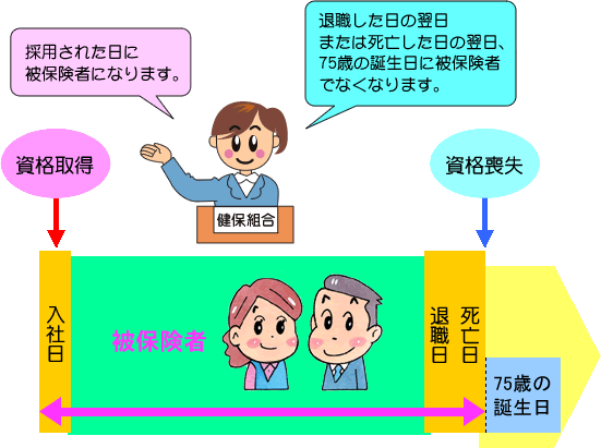 - ※1:当初の雇用期間が2ヵ月以内であっても、当該期間を超えて雇用されることが見込まれる場合は、雇用期間の当初から健康保険に加入となります。
